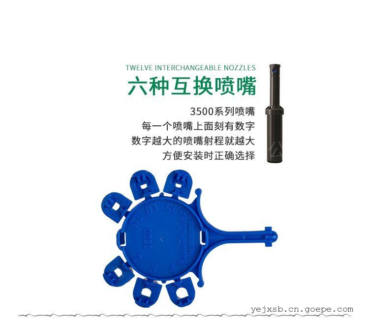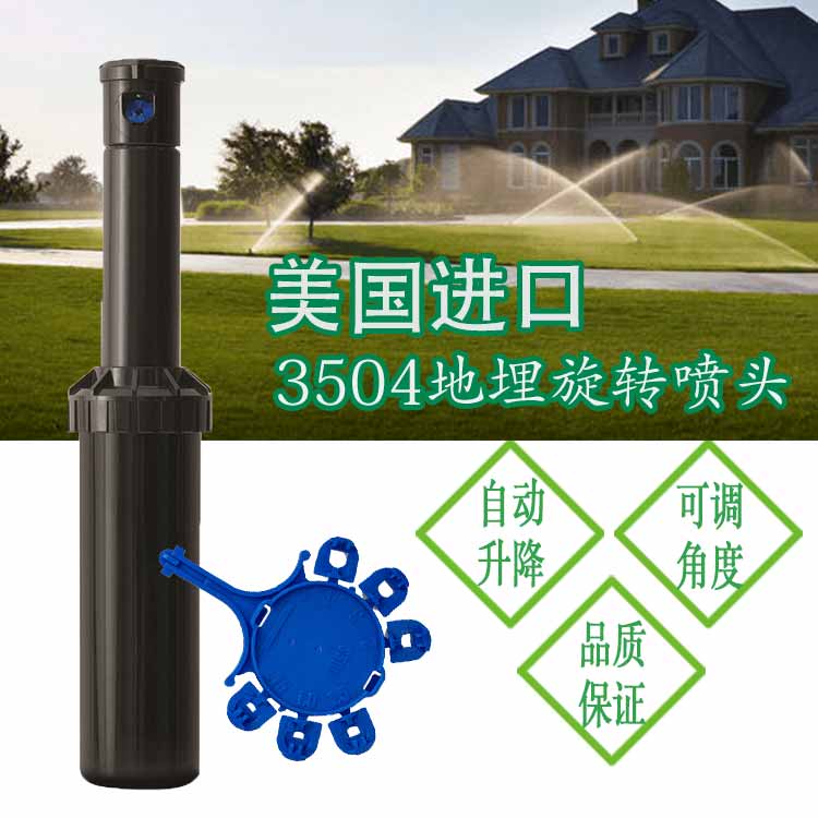 美国雨鸟3504地埋式旋转喷头:该系列喷头为小射程旋转式,适用于公园、游乐场、校园、工矿企业、街道等中小面积草坪、花卉的喷灌。