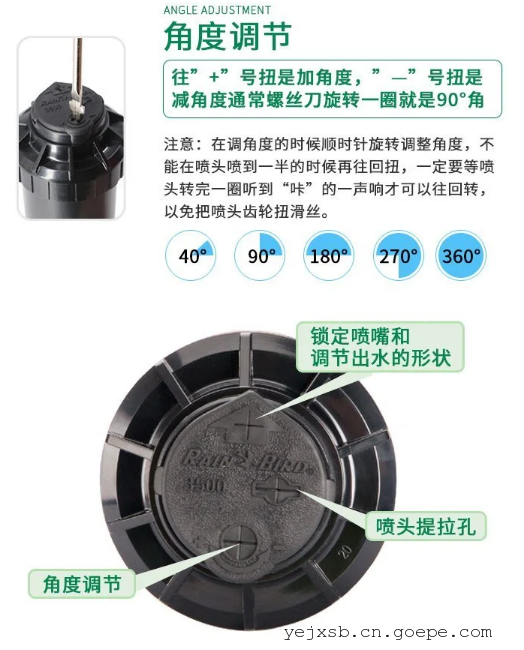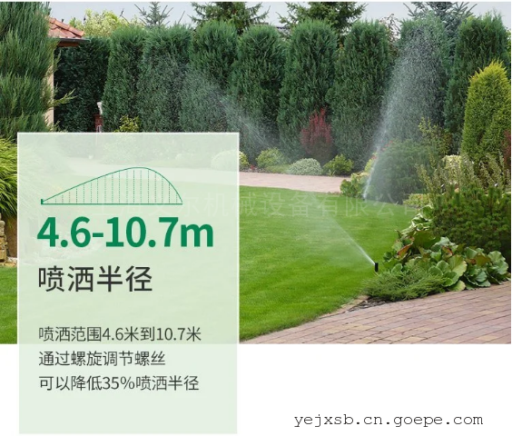 ∙融全圆和扇形喷洒为一体,顶部扇形调节,操作简单,更换喷嘴方便,射程调节螺钉可减小35%射程。